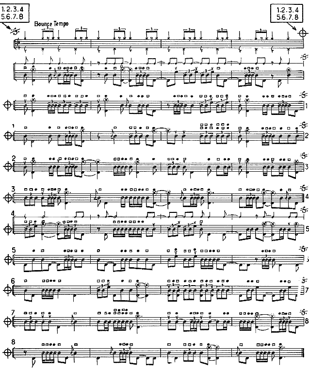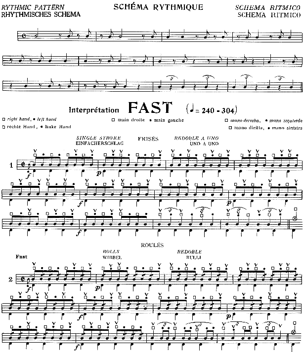 Conçue pour un travail journalier, cette méthode a pour base un thème rythmique joué de 97 façons différentes.